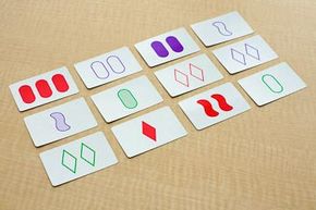 Maybe you would like to learn more about one of these? Number of shapes (one, two, or three), shape (diamond, squiggle, oval), shading (solid, striped, or open), and color (red, green, or purple). Check spelling or type a new query. The deck consists of 81 unique cards that vary in four features across three possibilities for each kind of feature: We did not find results for: